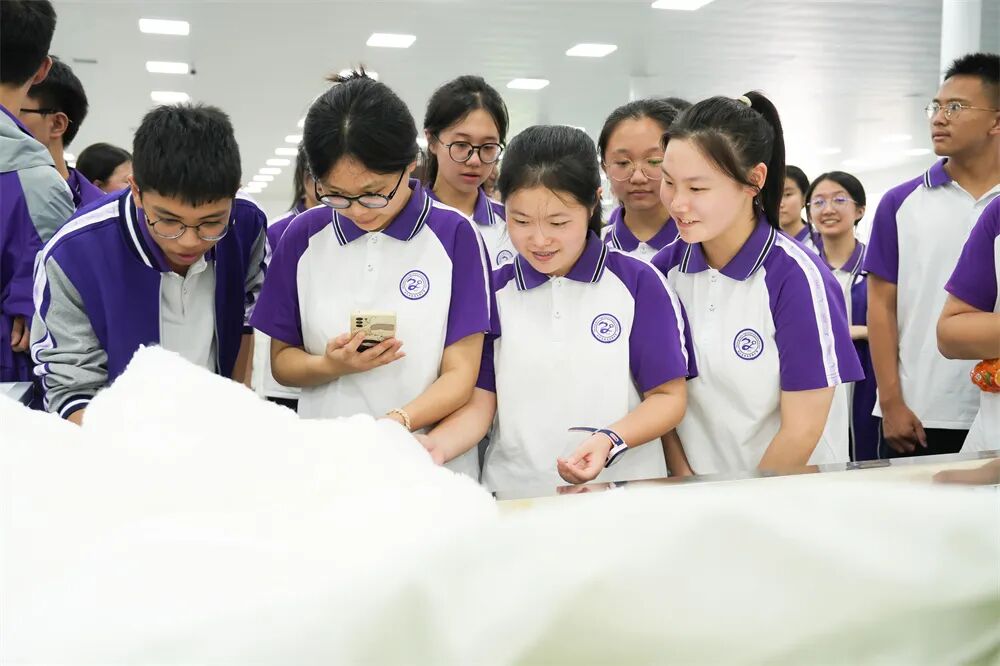 同学们不仅学习了鉴别蚕丝真伪的专业知识,还亲手体验了拉制蚕丝被的传统工艺,感受了“中国绸都”的文化底蕴,更体会了“匠心质造”的文化传承。