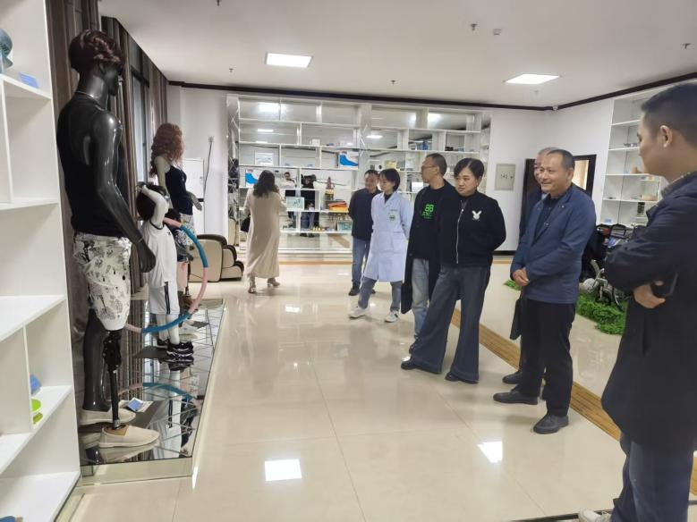 在县残疾人康复中心,调研组先后调研一楼辅具展示厅与二楼中医医院残疾儿童康复训练工作。在辅具展示厅,调研组了解各类康复辅具的适配种类、申请流程及推广使用情况;在残疾儿童康复医院,现场观摩康复师为残疾儿童开展的运动疗法、作业疗法等训练课程,关切询问儿童康复效果与政策落实情况。