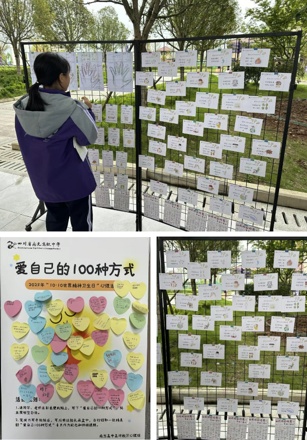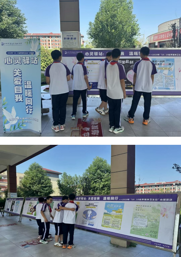 2025年10月,南充高中高坪校区以“世界精神卫生日”为契机,围绕“关爱自我,温暖同行”主题,精心组织为期二十天的系列心理活动。依托主题展板、互动体验、专题培训等丰富形式,推动心理健康教育走出课堂、融入日常,在校园中掀起一场“全员育心”的暖心实践。