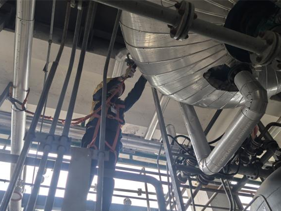 面对紧迫的工期和繁重的检验任务,市特检所主动作为,第一时间启动“32363”服务企业工作机制,迅速调配精干技术力量,成立专项检验小组。通过建立微信工作群,实现与企业“零距离”沟通,精准对接需求;精心制定检验方案,科学统筹检验进度;提前进厂审核设备技术资料,明确检验重点和风险点;全过程跟踪指导企业完成保温层拆除、外表面漆面打磨、内部气体置换清洗等前期准备工作,为高效推进检验工作打下坚实基础。