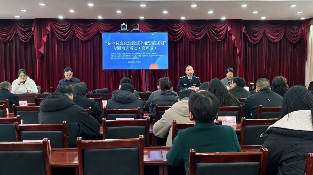 为切实解决企业在经营发展中面临的标准化认知薄弱、资质规划不清等现实难题,近日,由南充市市场监管局、市经济和信息化局及市工商业联合会共同主办的“全市企业标准化建设及企业资质规划专题培训”活动全面启动。该系列培训以“标准引领、资质赋能,助推南充企业高质量发展”为主题,将在全市各县(市、区)陆续开展专题培训和专人指导。首站培训已于11月28日在高坪区市场监管局会议室成功举办。