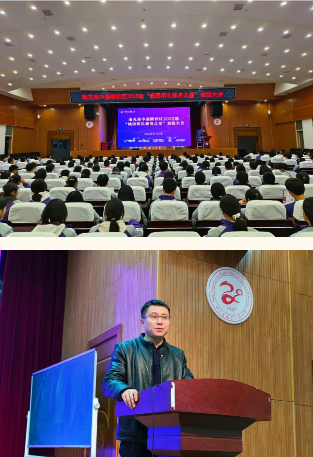 学校在此次表彰中强调,获奖同学是践行 “诚勇明礼” 的带头人,希望他们珍惜荣誉、扛起责任,争做文明守纪的标杆与学习引领的先锋,带动身边同学共同进步。此次表扬大会既是对新生入学教育成果的集中展示,也是学校坚持 “五育并举”、强化德育实效的生动实践。未来,南充高中嘉陵校区将持续以校训精神为引领,深耕立德树人沃土,让文明礼仪之花绽满校园,为学生全面发展与终身成长赋能。