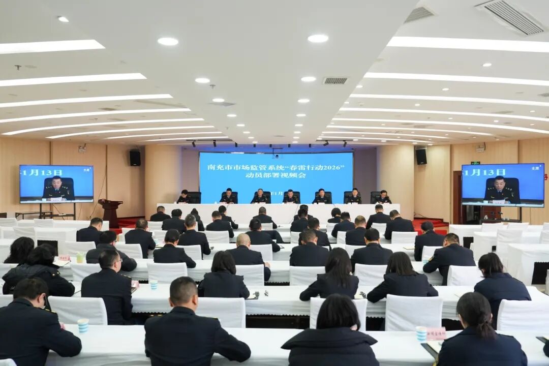 1月13日下午,市局组织召开全市市场监管系统“春雷行动2026”动员部署会,市局党组书记、局长杨春林出席会议并作动员讲话,对行动进行全面部署。市局党组成员、副局长梁建文主持会议,市局党组成员、药品安全总监许永波解读行动方案,顺庆区、高坪区、西充县市场监管局作表态发言。