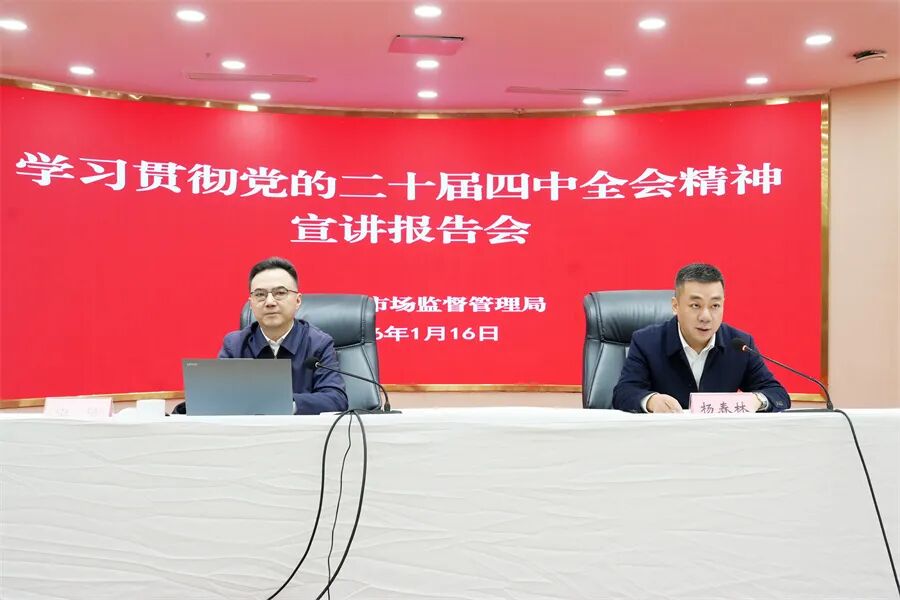1月16日,市市场监管局召开学习贯彻党的二十届四中全会精神宣讲报告会。市委宣讲团第七分团负责人,市生态环境局党组书记、局长宇旻作了宣讲报告。市市场监管局党组书记、局长杨春林主持会议。