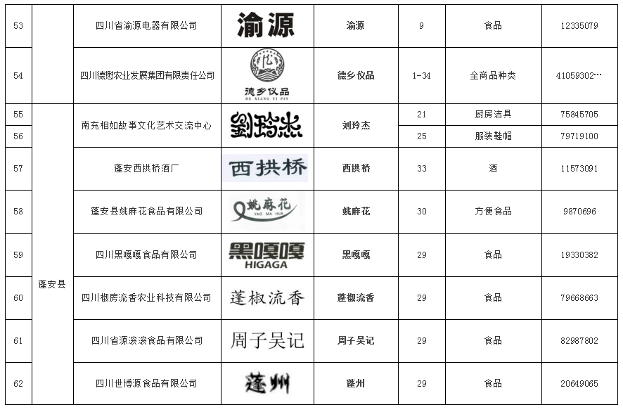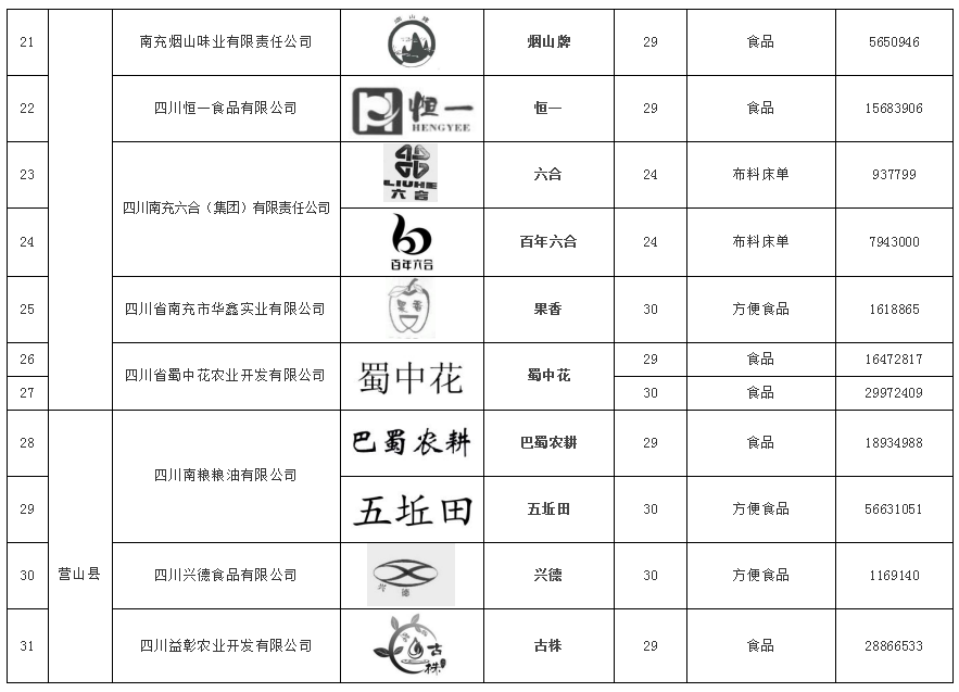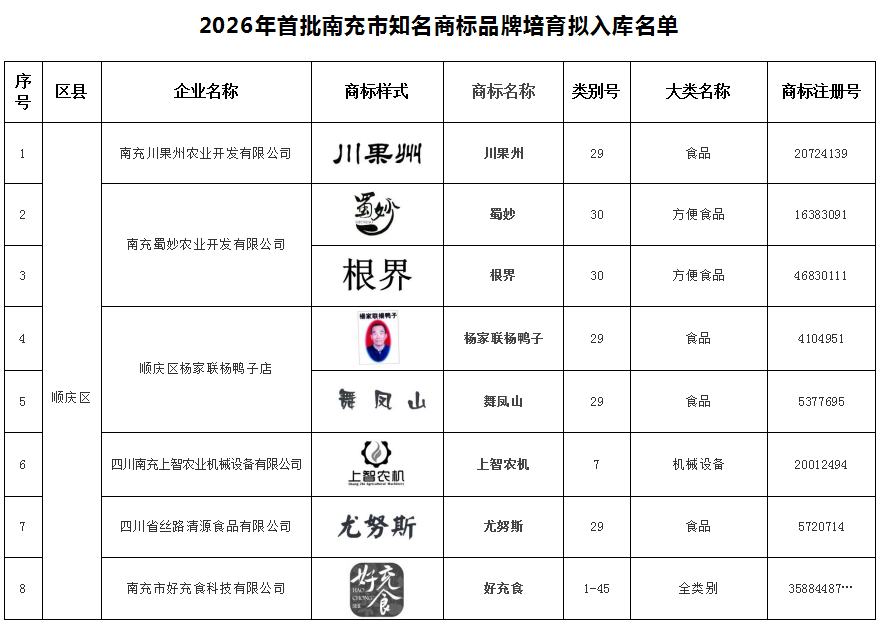 2026年首批南充市知名商标品牌培育拟入库名单公示
