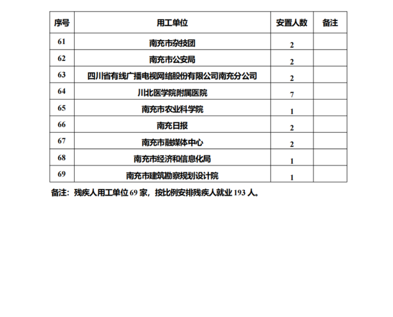 2.南充市市本级2024年度按比例安排残疾人就业用工公示表