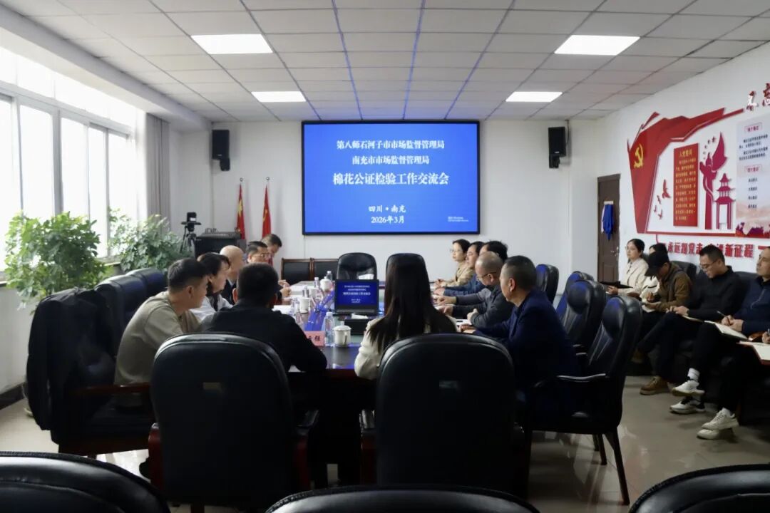 调研组实地参观了南充纤检所专业实验室,了解其业务运行与技术能力建设情况。座谈会上,双方围绕棉花公证检验、实验室管理、机构改革等议题深入交流,共享了质量控制、人员能力匹配、信息化支撑等实践经验,为进一步提升检验质效、夯实技术基础提供了新思路。