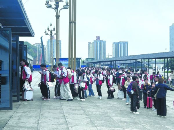 南充北火车站副站长闫艺佳告诉记者:“研学旅行是课堂的延伸,安全有序是首要前提。早在出行前两周,车站便与校方对接,为学校‘一对一’量身定制了团体出行方案。”