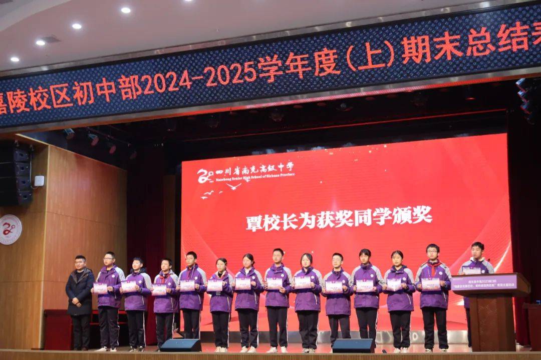 岁序更替,华章日新;旧梦传承,新帆启航。回首这一学期,我们全体师生在求知、探索、奋进的道路上并肩同行,共同书写了属于我们南高人的精彩篇章。为总结经验,表扬先进,1月20日早上,南充高中嘉陵校区初中部召开期末总结表扬会,一同回顾过往的奋斗足迹,表扬优秀,展望未来。