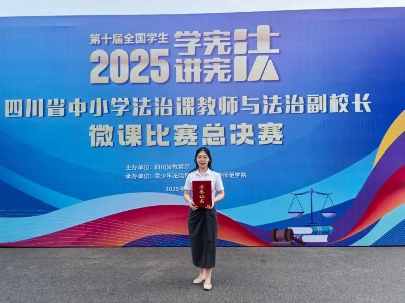 近日,由四川省教育厅主办的四川省中小学法治课教师与法治副校长微课比赛总决赛在成都师范学院圆满落幕。来自全省各市(州)选拔推荐的优秀教师同台竞技,南充高中王宇轩老师凭借微课作品《法治国家》荣获法治课教师(高中组)一等奖。