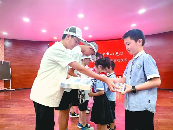 两地学生代表互换礼物。