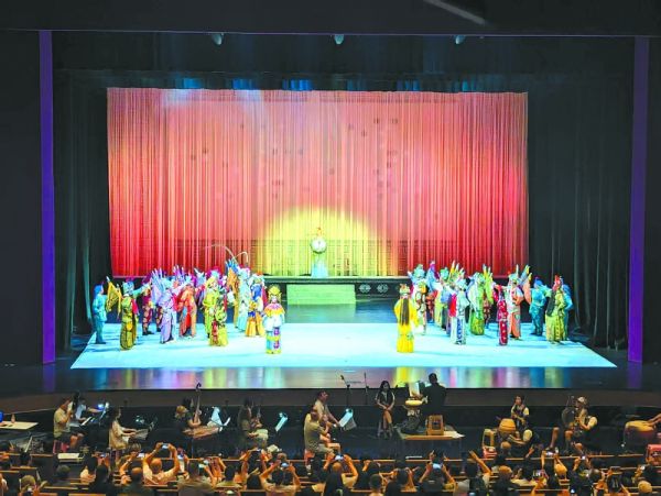 川剧《甘露寺》取材于小说《三国演义》,讲述“赔了夫人又折兵”的故事。演出现场,演员们用饱满的热情、优美的唱腔、精彩的演绎,赢得了全场观众的喝彩。