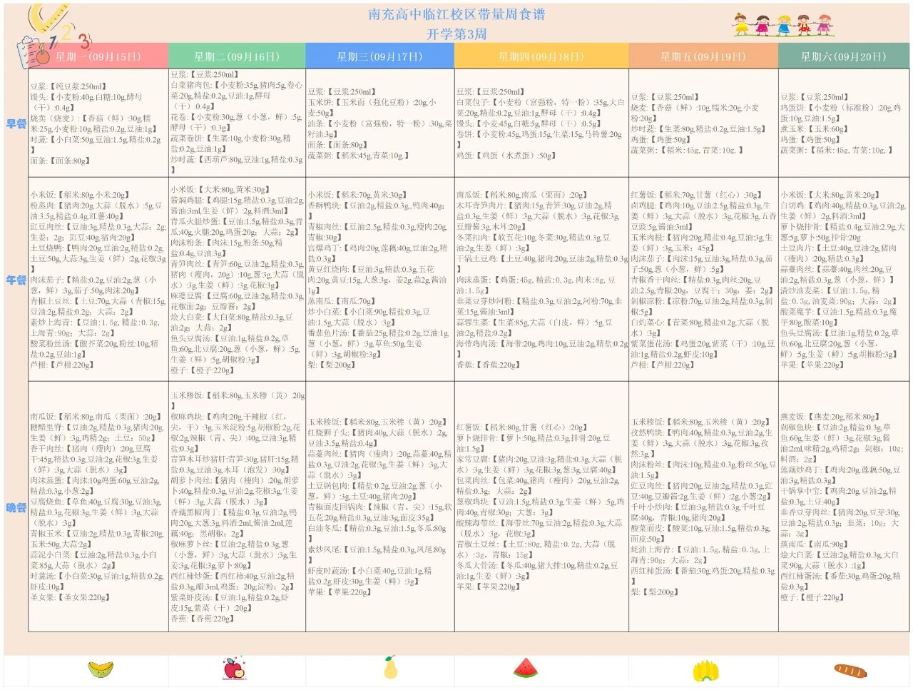 南充高中临江校区第三周营养食谱,来啦!