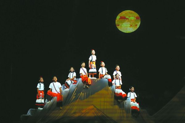 演出现场,一群汉族和彝族少年用清脆的嗓音共同演绎歌曲《玉盘》,让现场观众耳目一新。这首入围本届文华奖的歌曲,以自古以来承载着丰富情感寄托和美好向往的月亮为对象,唱出了对月亮、对星辰大海的追问,以及对中华民族求索精神的传承。童声的表达,穿透了表面的稚嫩,直抵生命、时间与宇宙的深远奥秘。