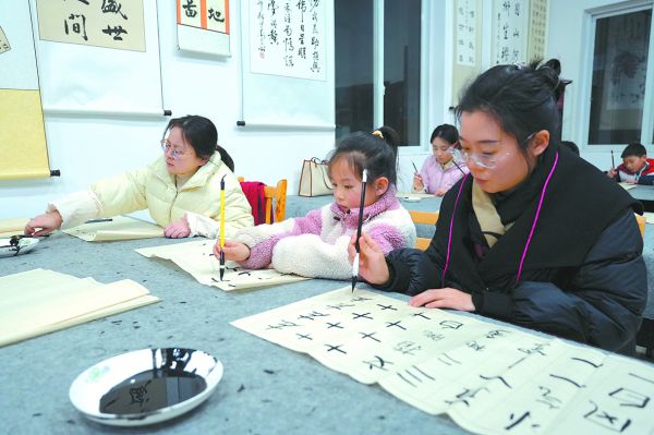 青年夜校开设的书法课。(资料图) 蒋语涵 摄