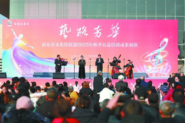 日前,“艺路芳华”南充市文化馆联盟2025年秋季公益培训成果展演在南充市博物馆广场圆满落幕,声乐、舞蹈、器乐、戏曲、非遗、走秀等多种艺术形式集中呈现,19个节目主题鲜明、编排精良,充分体现了公益培训的覆盖广度与教学深度。