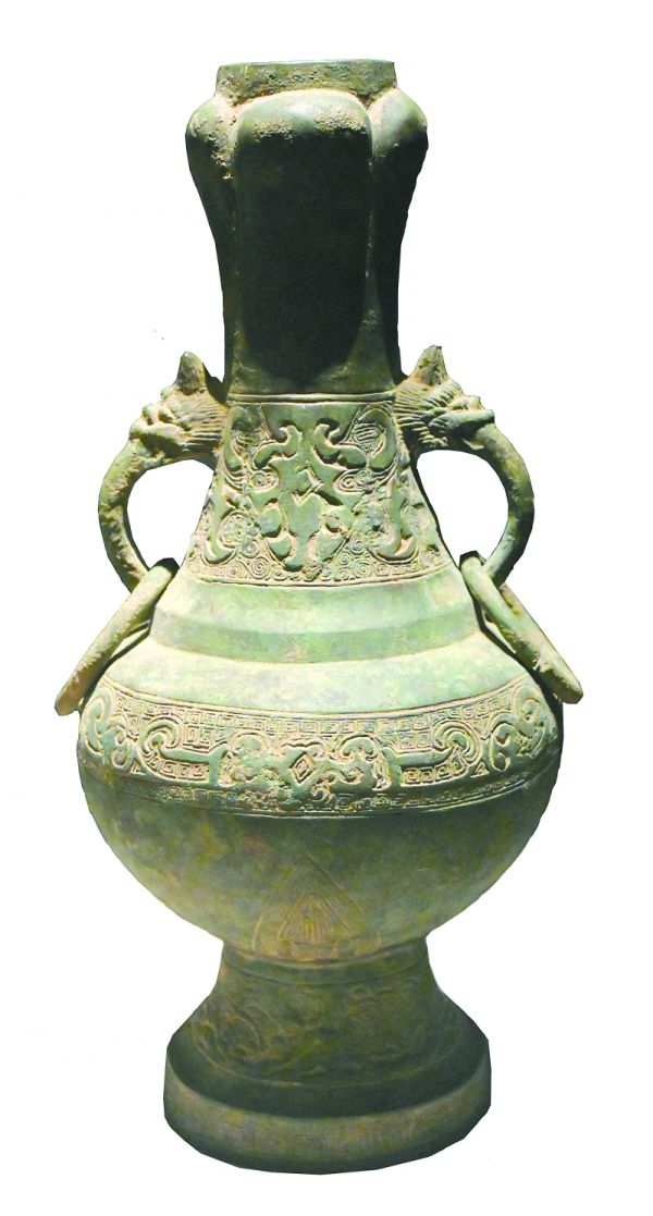 宋蒜头双耳铜瓶。