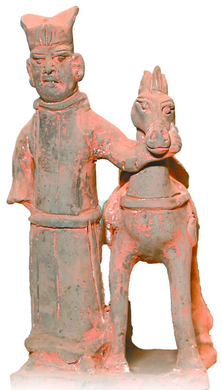宋灰陶男牵马俑
