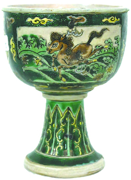 清素三彩开窗瑞兽纹瓷高足杯