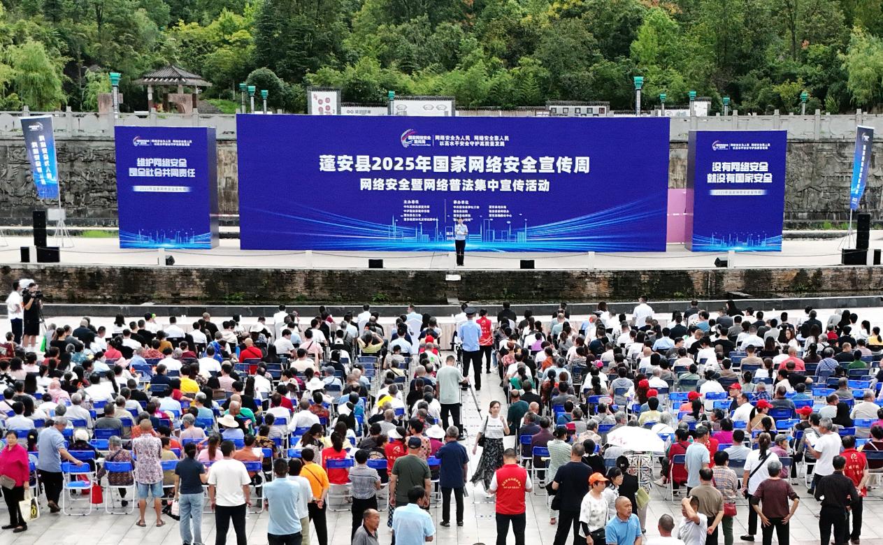 9月19日,四川省南充市蓬安县2025年国家网络安全宣传周网络安全暨网络普法集中宣传活动在该县相如文化公园举行,全县各职能部门负责人、数字经济企业代表、优秀新时代文明实践志愿服务组织代表、互联网联合会代表等500余人在现场参加活动。